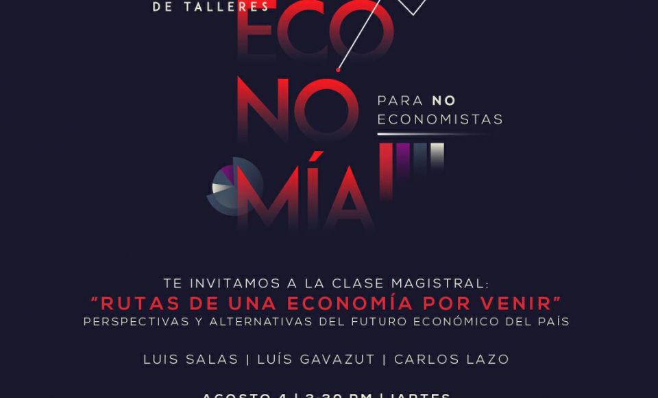 Como actividad del cierre del Ciclo de Talleres “Economía para no Economistas” los profesores Luis Salas, Luis Gavazut y Carlos Lazo ofrecerán una clase magistral para reflexionar sobre las perspectivas y alternativas del futuro económico del país, este viernes 4 de agosto a las 03:30 de la tarde en la sala Gladys Meneses del Instituto de las Artes de la Imagen y el Espacio (IARTES).