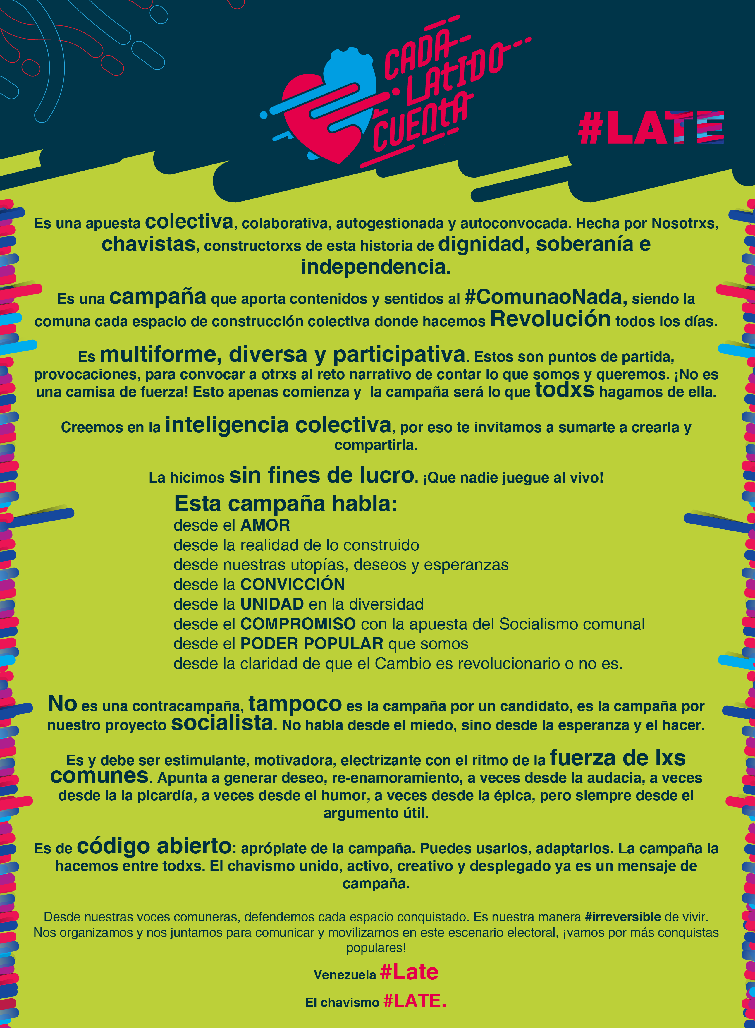 Decálogo político de la campaña comunicacional popular, colaborativa y autogestionaria #Cada Latido Cuenta, por la construcción de sentidos comunes acerca del Socialismo Comunal.