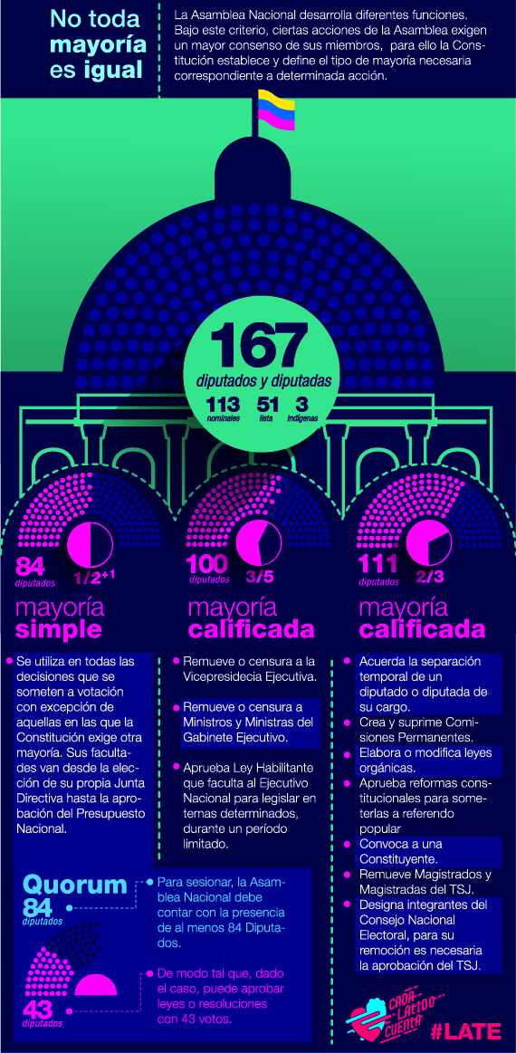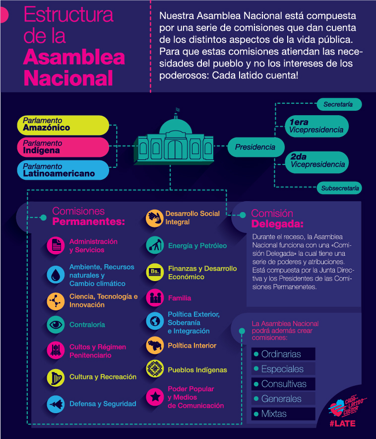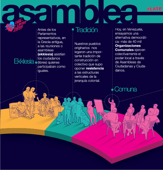 Les presentamos esta serie de infografías sobre la Asamblea Nacional, a través de las cuales mostramos su estructura, la estratégica función que cumple en el equilibrio de los poderes de un país y la cultura asamblearia que se expresa en varias organizaciones comunales venezolanas. Este seriado es producto de la campaña colaborativa “Cada Latido Cuenta” (2015).
